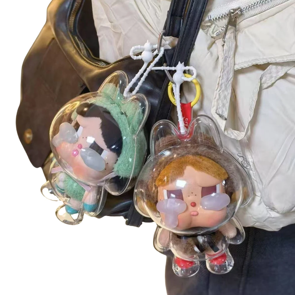 Transparent Protective Cover Dustproof Cartoon Toy Storage Case Cute Elf Plushie Display Cover Clear Doll Cover for Doll Lovers Features: